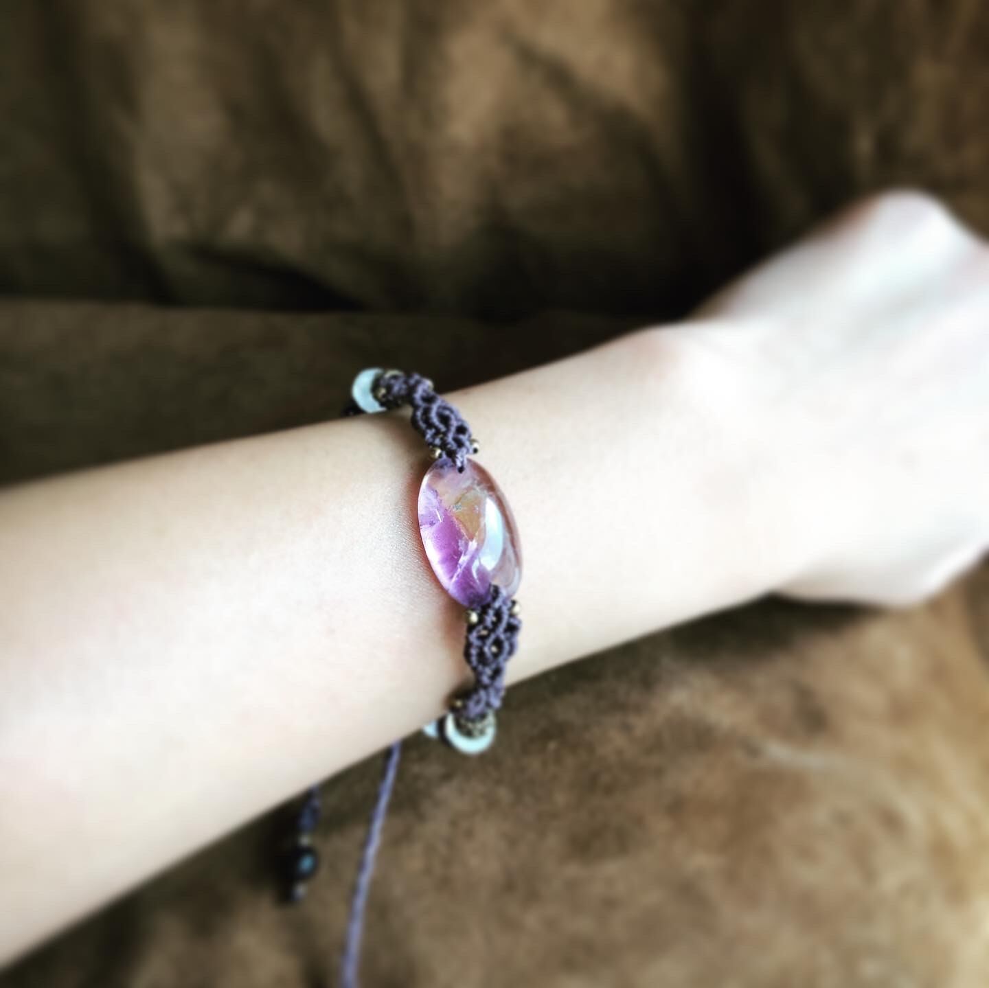 不動の人気天然石アメトリンを穴あけルースに仕立てルースそのものの表情が楽しめるブレスレットになります。