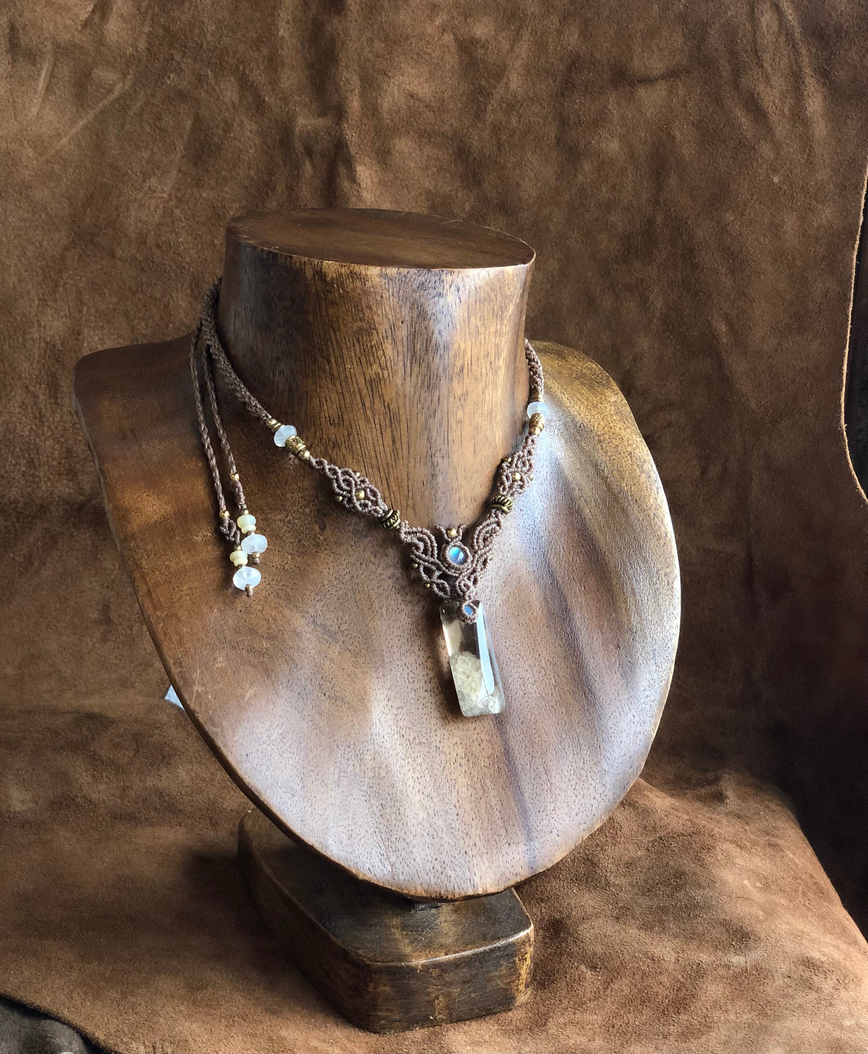 一点身につけているだけでも存在感があるマクラメ編みネックレスに仕上げました。