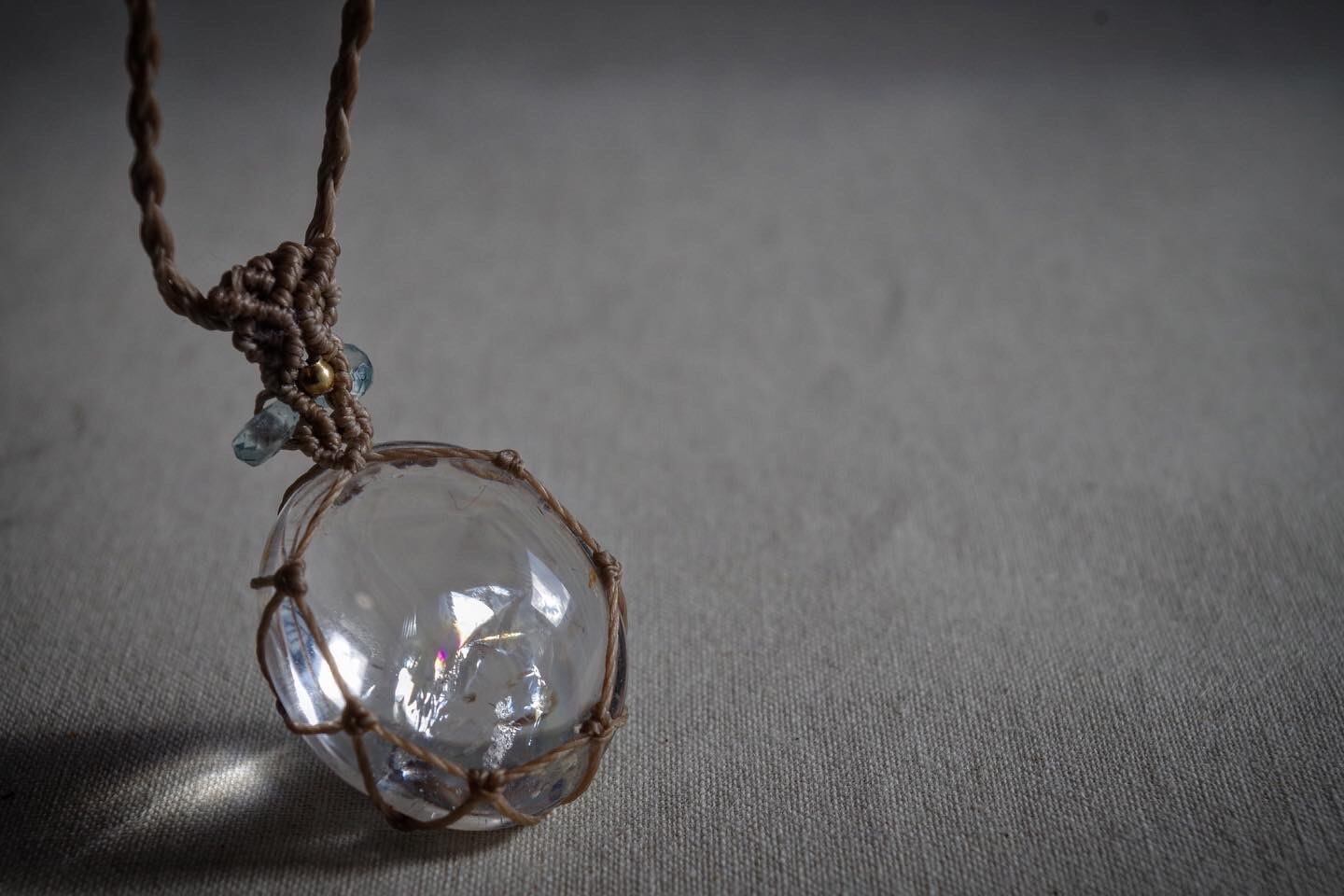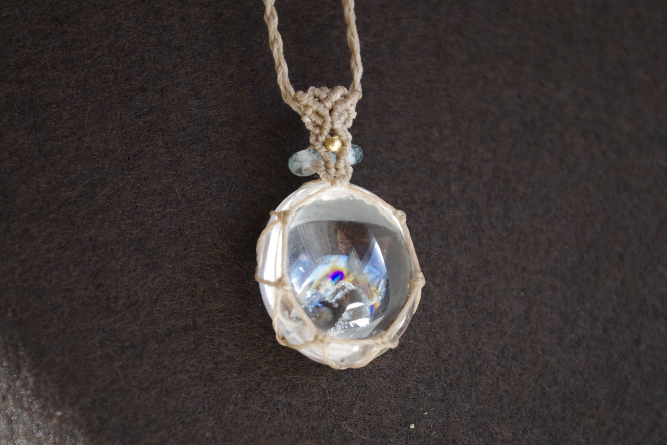 透き通った水晶のなかに虹を内包したアイリスクォーツ。光の角度によってキラキラと虹が現れる様はまさに美しいの一言です。