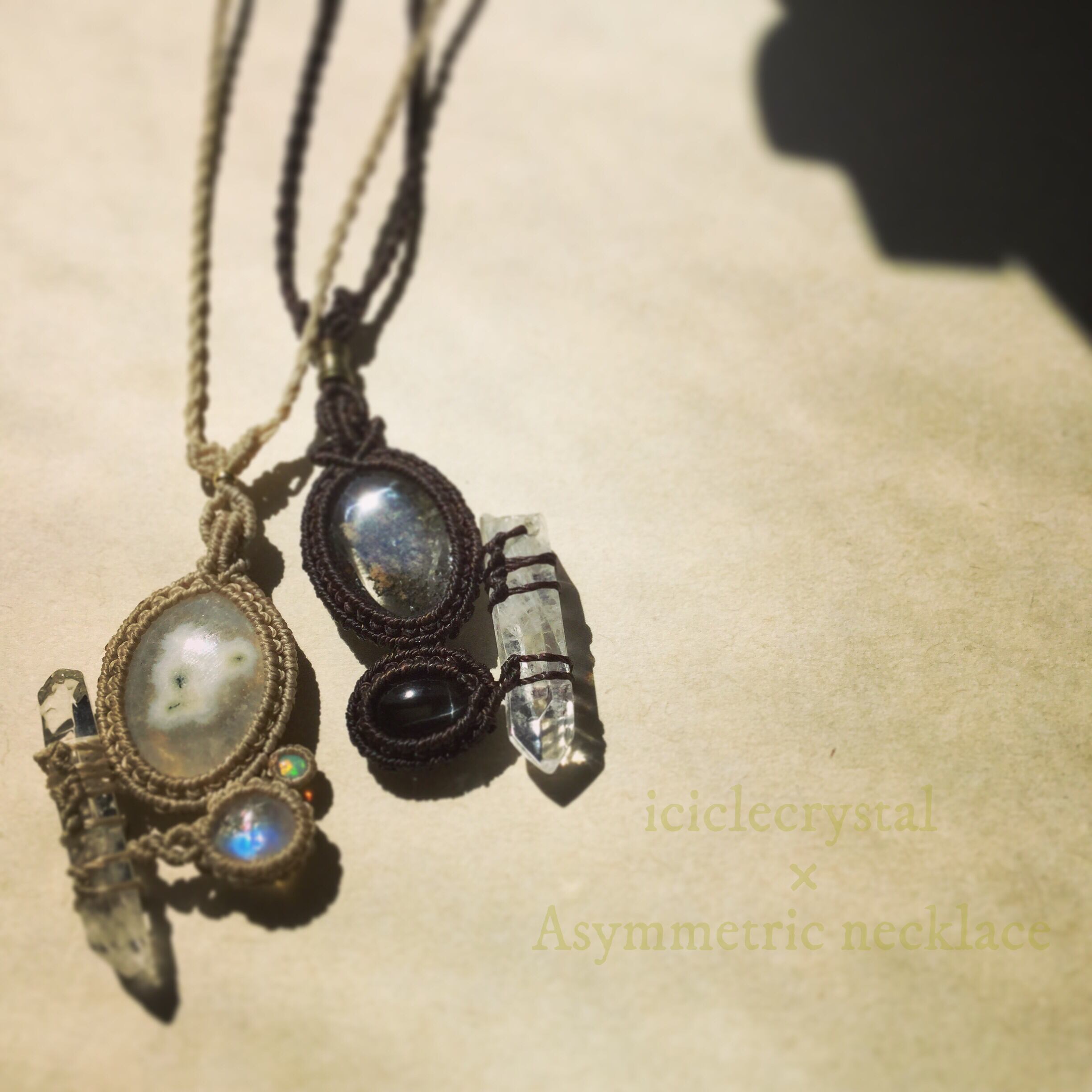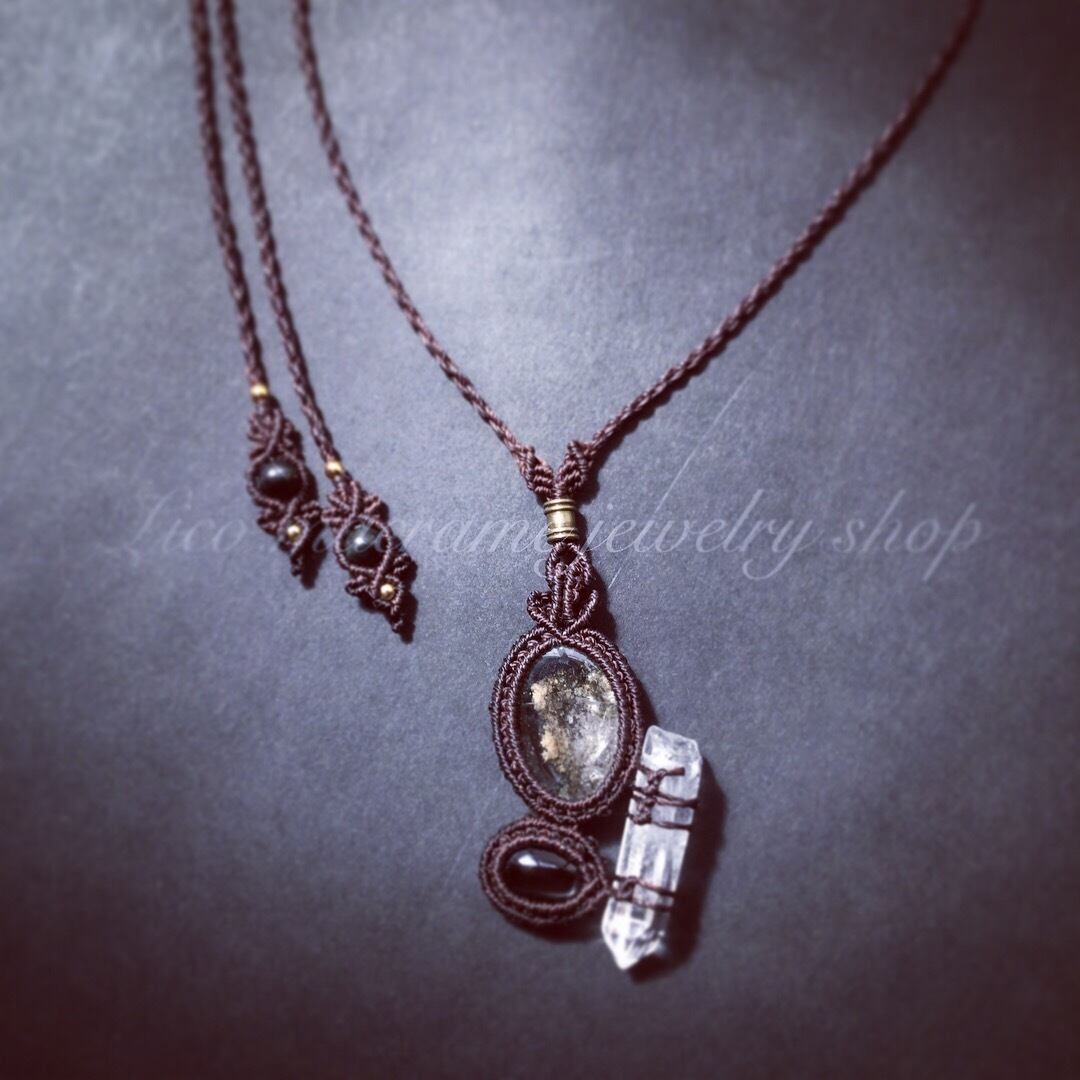 ガーデンクォーツxブラックスター×氷柱クリスタルマクラメペンダント